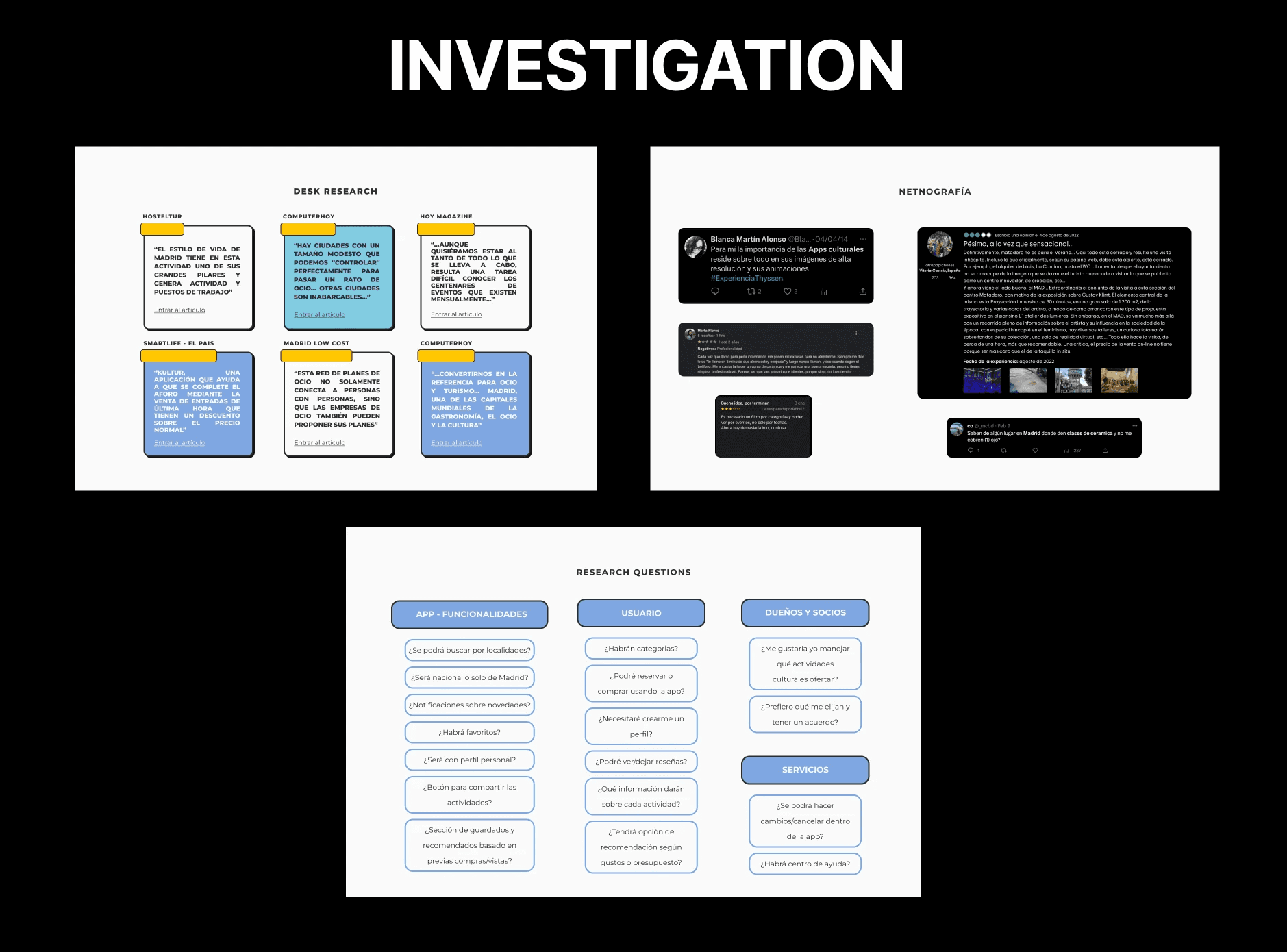 A groundbreaking app idea where you can immerse in the world of cultural activities in one of the world's most culturally diverse city: Madrid. The idea of the app was the perfect topic for ther final project on my master degree in order to demostrate all learning and skill I've gained.